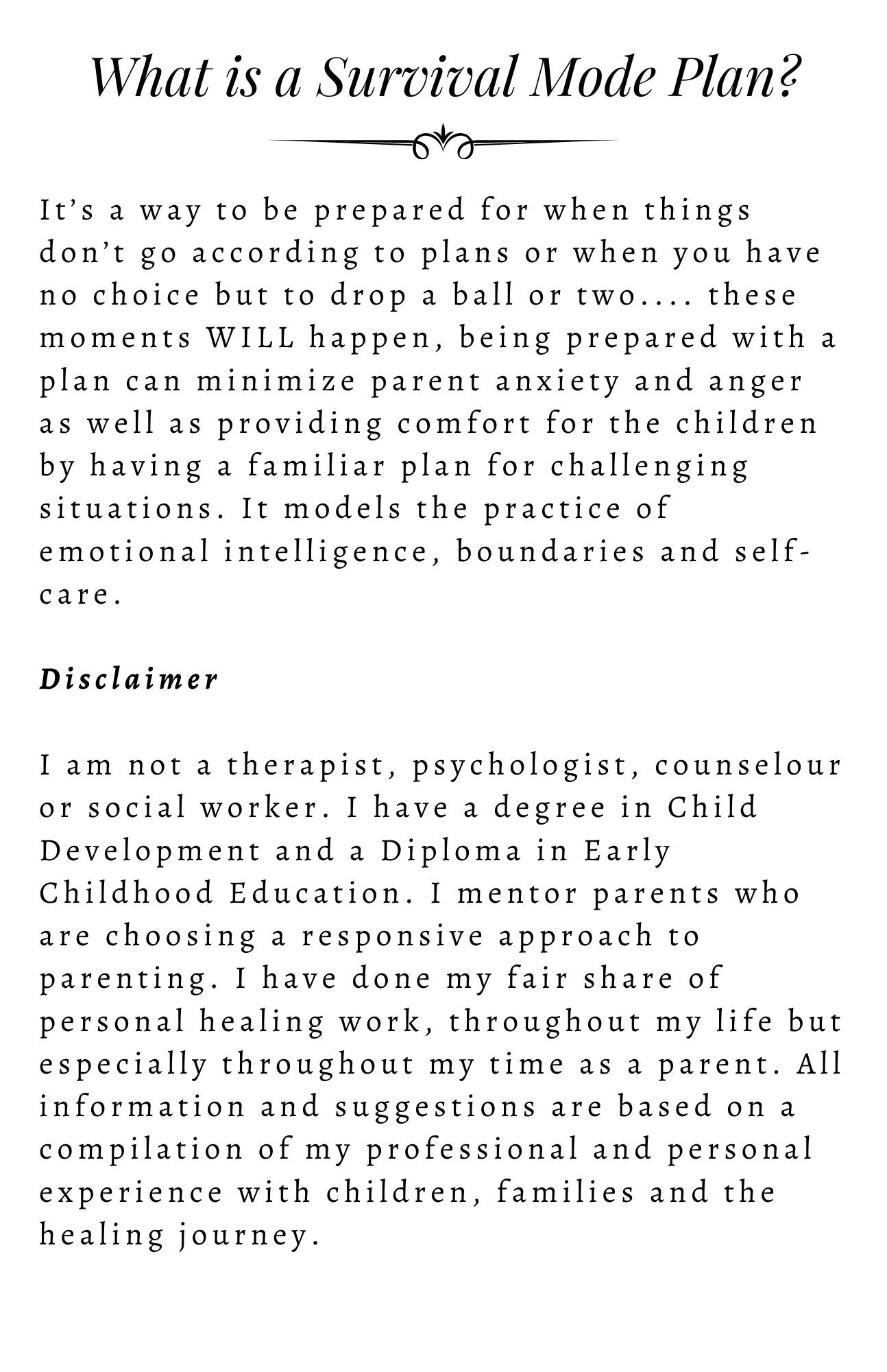 This guide will help you prepare Survival Mode Plans and give you reflection tools and insight to support your healing and parenting journey.